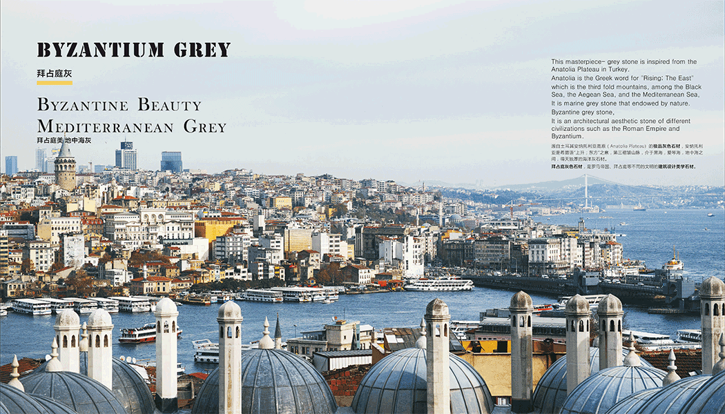 源自土耳其安納托利亞高原(Anatolia Plateau)的極品灰色石材,安納托利亞是希臘語“上升;東方”之意,第三褶皺山脈,介于黑海,愛琴海,地中海之間,